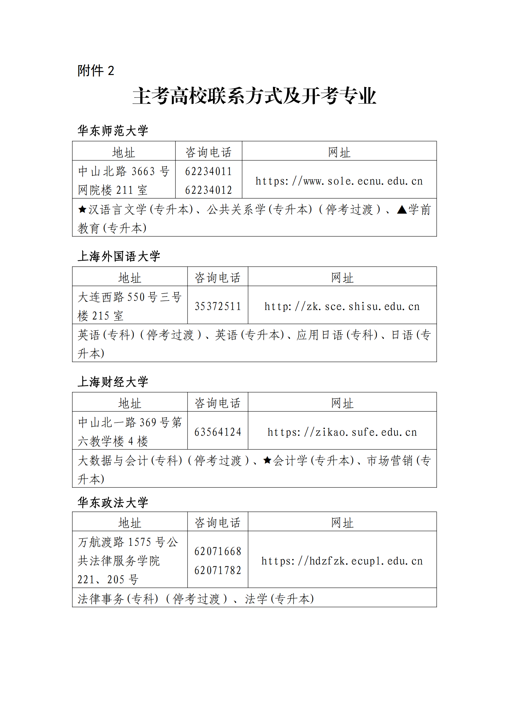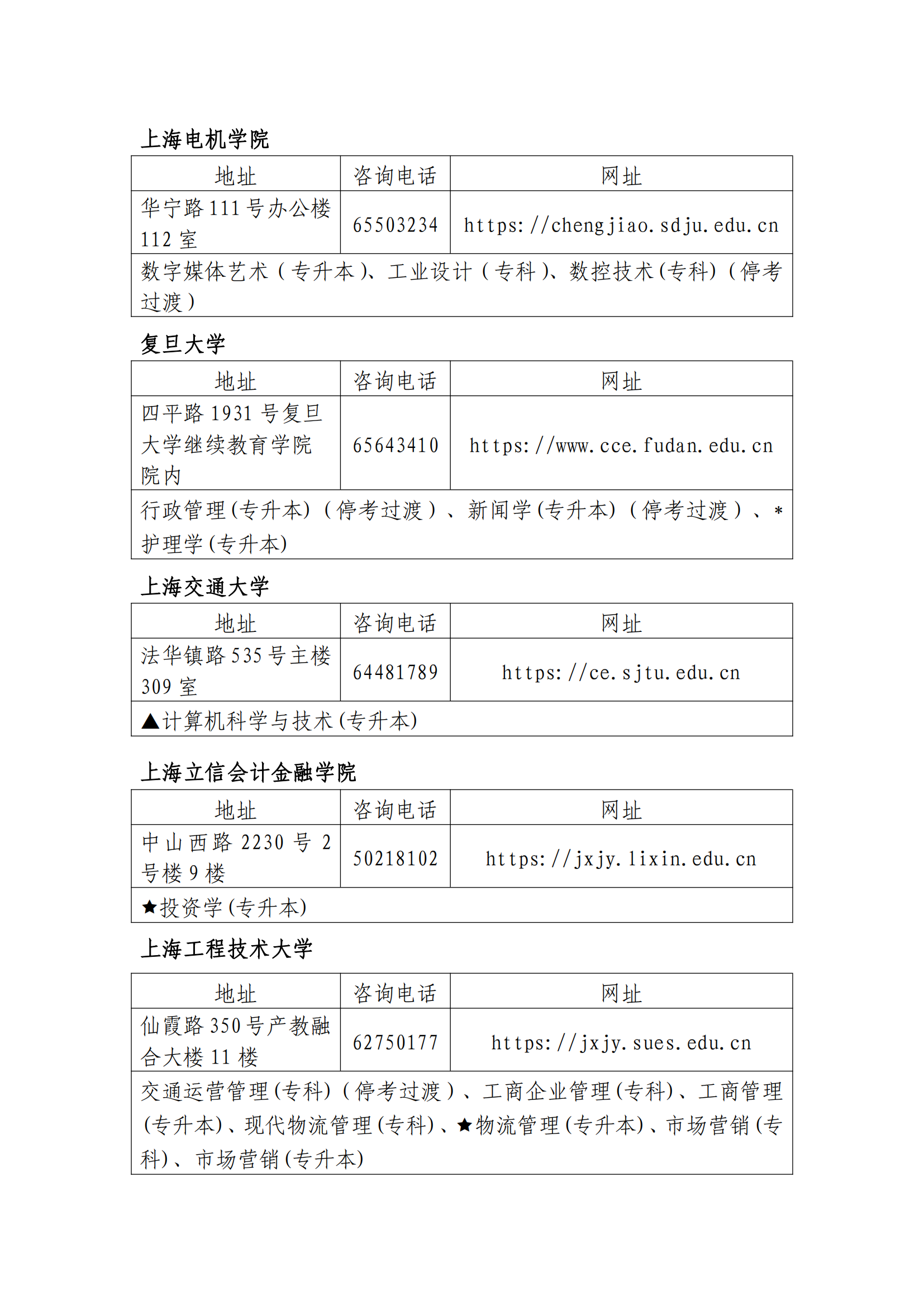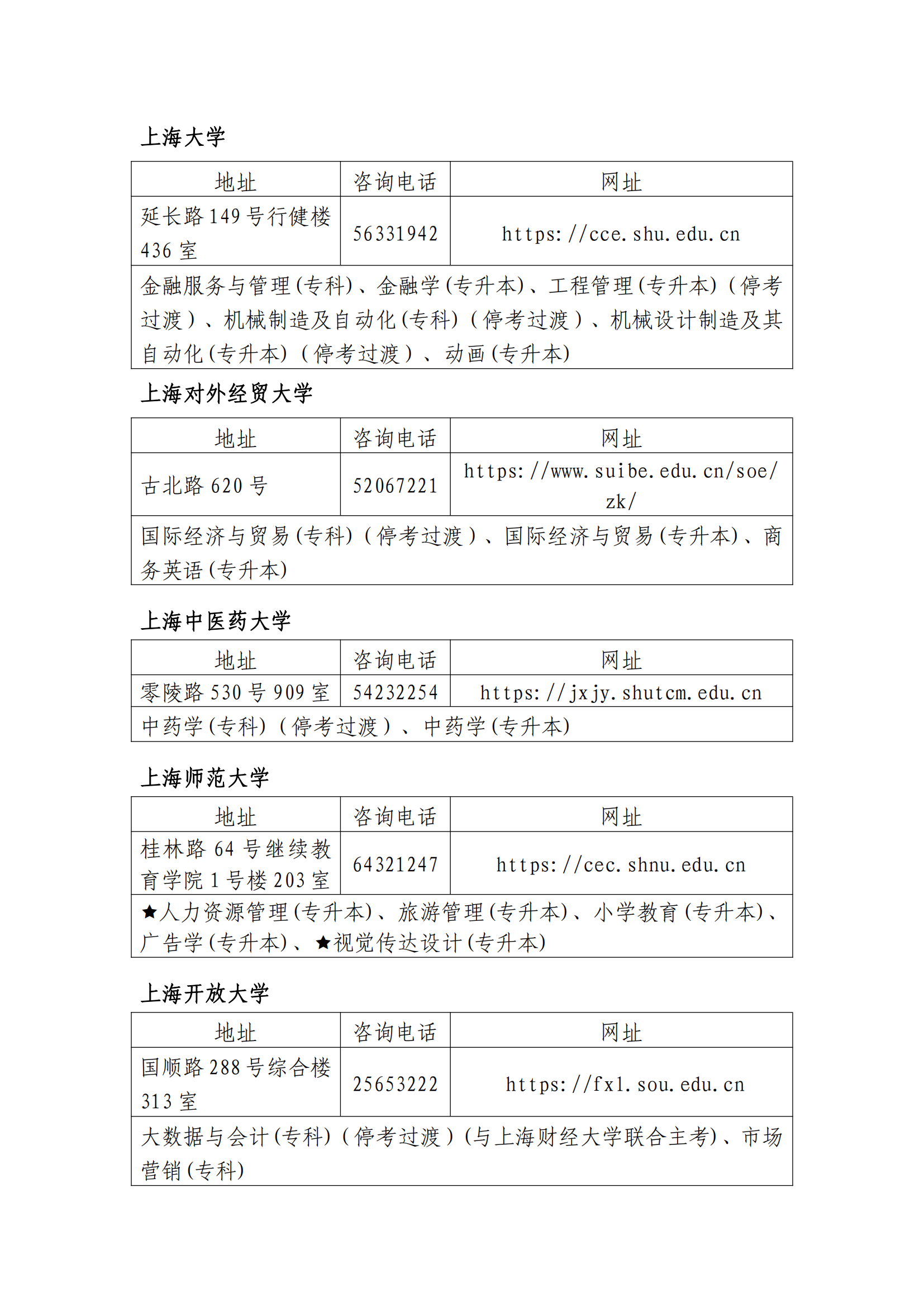 2024年上海自考主考高校联系方式及开考专业